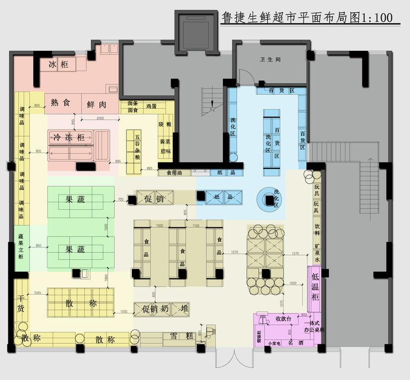 一、平面規(guī)劃:平面布局中重點(diǎn)考慮了本項(xiàng)目的建筑類型,物業(yè)形態(tài)以及項(xiàng)目所在的社區(qū)的客群,消費(fèi)能力,結(jié)合超市固有的特點(diǎn)(如裝修風(fēng)格定位、貨架的樣式、貨架規(guī)格,購物通道大小等的設(shè)置)并考慮超市客群動線的合理性和適當(dāng)延長以及有意避免因建筑戶型限制而形成的購物死角,